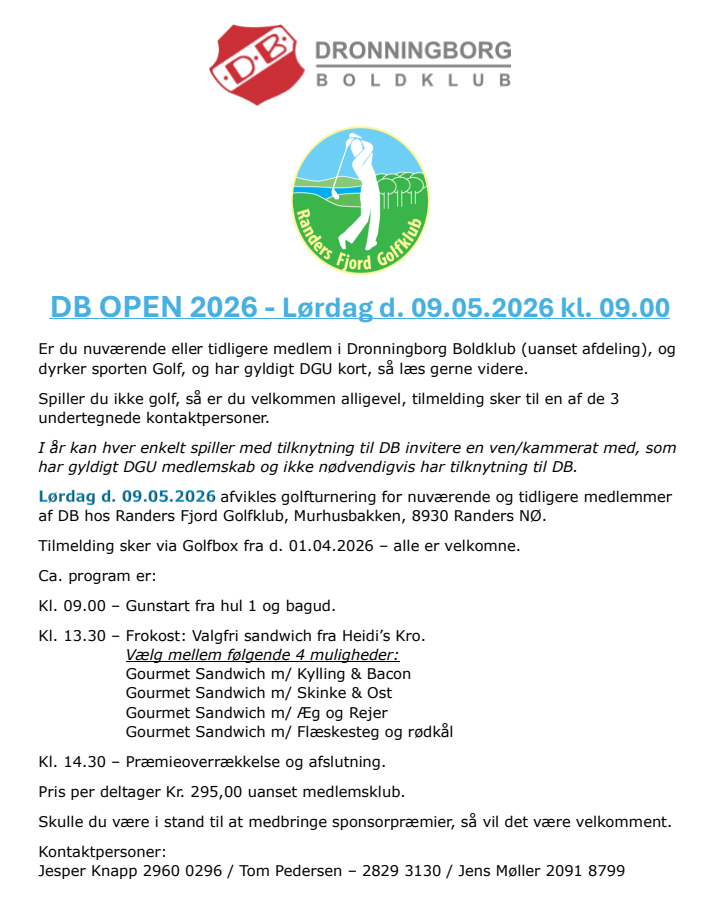 Privat turnering for nuværende eller tidligere medlemmer af Dronningborg Boldklub.Klubhus fra ca. kl. 13.30.