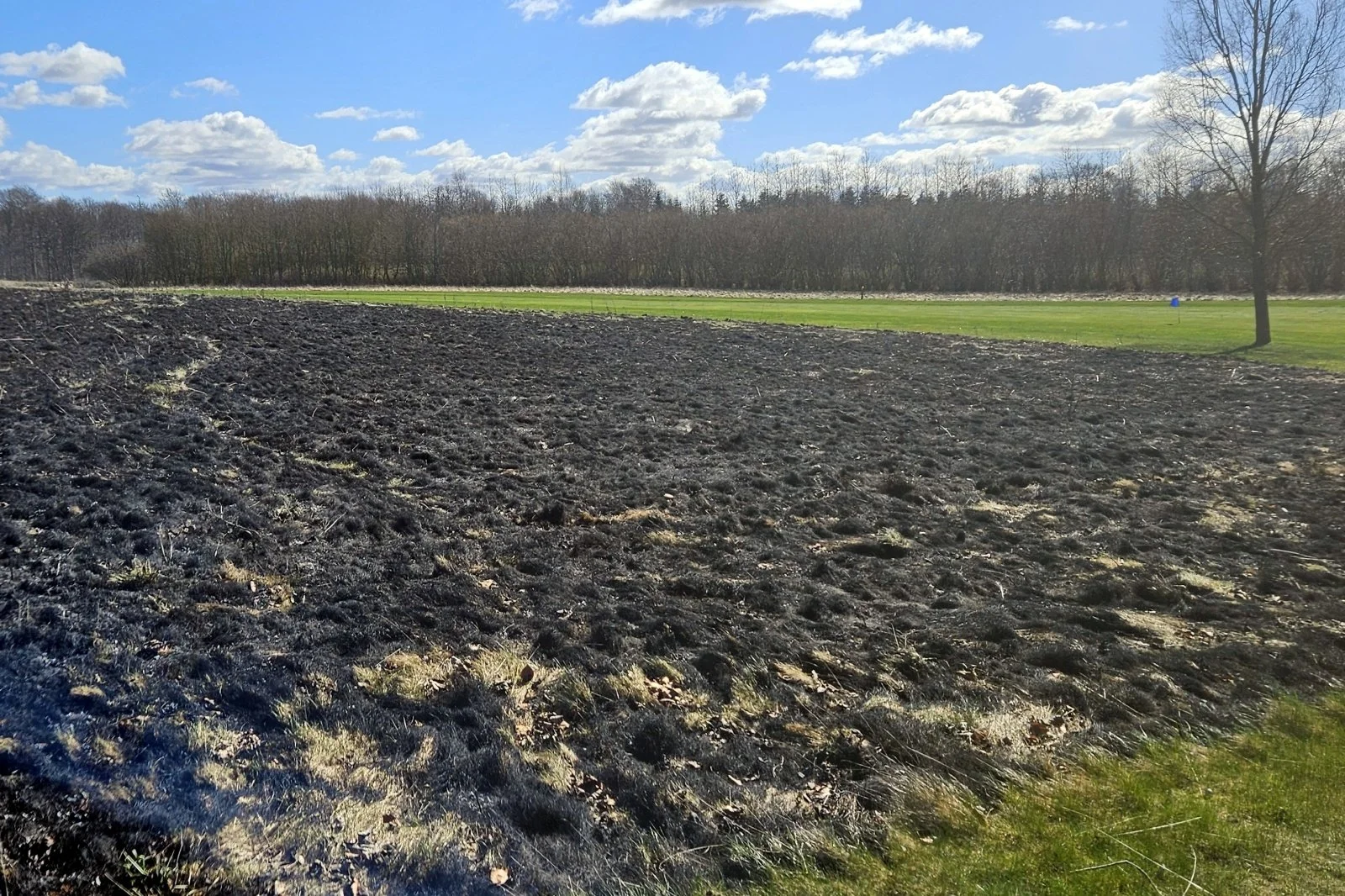 Tirsdag den 31.03.2026 gennemførte greenkeeperne en prøveafbrænding af roughen mellem hul 3 og hul 7.